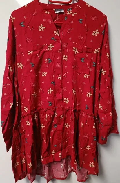 tolle festliche Bluse Tunika von beloved rot mit weihnachtlichen Motiven. Langarm (Ärmel können raufgeknöpft werden), vorne Knopfleiste.