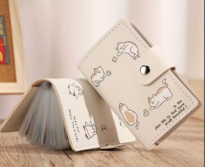 Damen-Kartenhalter, RFID-blockierende Geldbörse, mehrere Fächer, ultradünnes Design, Schnappverschluss, sicherer und stilvoller minimalistischer Kreditkarten-Organizer mit Katzen Motiv geeignet für Männer und Frauen