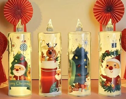 4 Stück Weihnachts-LED-Elektronische Kerzenlichter, Nachtlicht ohne Flammen von Santa Claus, Dekorationsrequisiten für Weihnachtskerzen, sicher und leise, geeignet für die Heimdekoration, Weihnachtsgeburtstagsfeier-Atmosphärenlichter