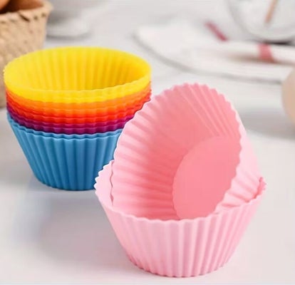 12 Stück, mehrfarbige Silikon-Muffinformen, hitzebeständig, Cupcake-Formen, hochtemperaturbeständig, rund
