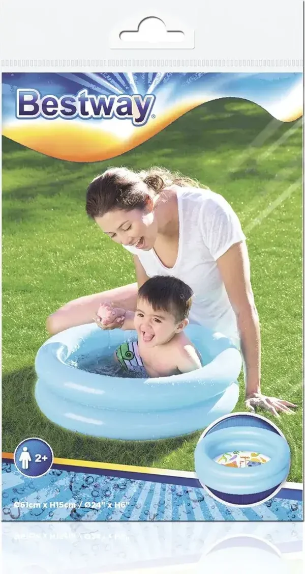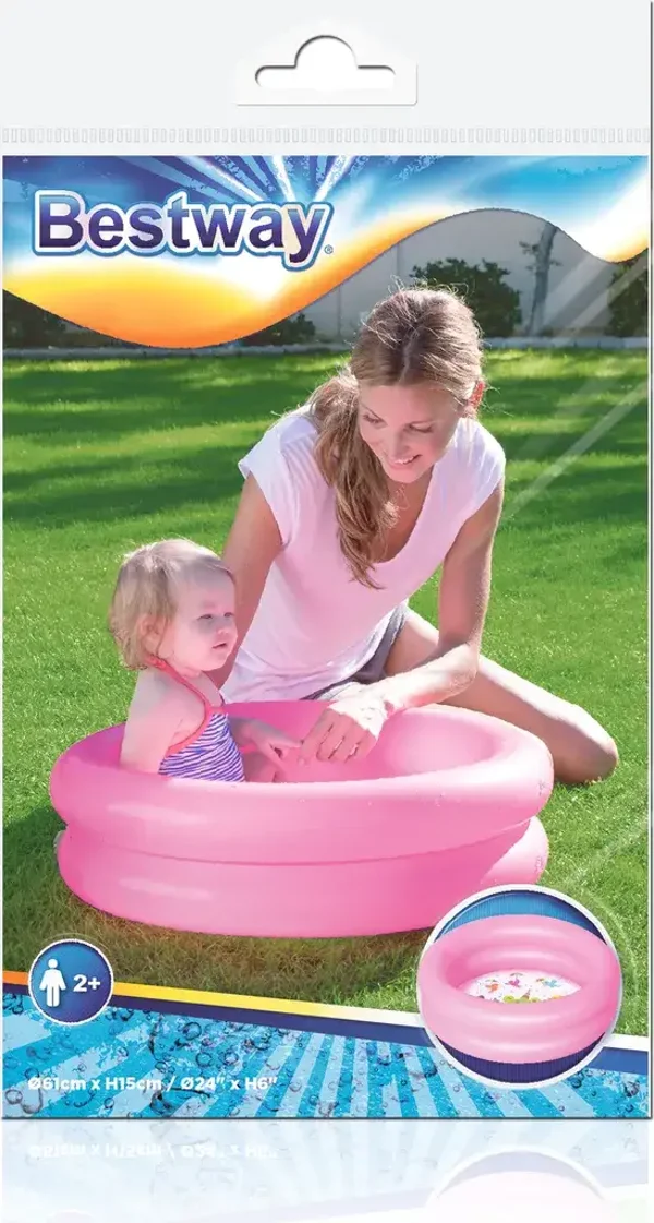 Spezifikationen - Material: PVC; Farbe: rosa / blau; Art: aufblasbar; Form: rund; Alter: 2+; Kapazität: 21 l. ; Maße (Durchmesser / Höhe): 61/15 cm; Gewicht: 230 g; Gewicht: 247 g.