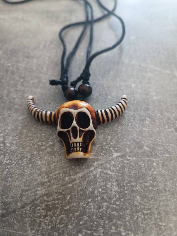 Halskette mit Totenkopf-Anhänger Knochenimitat aus Harz.