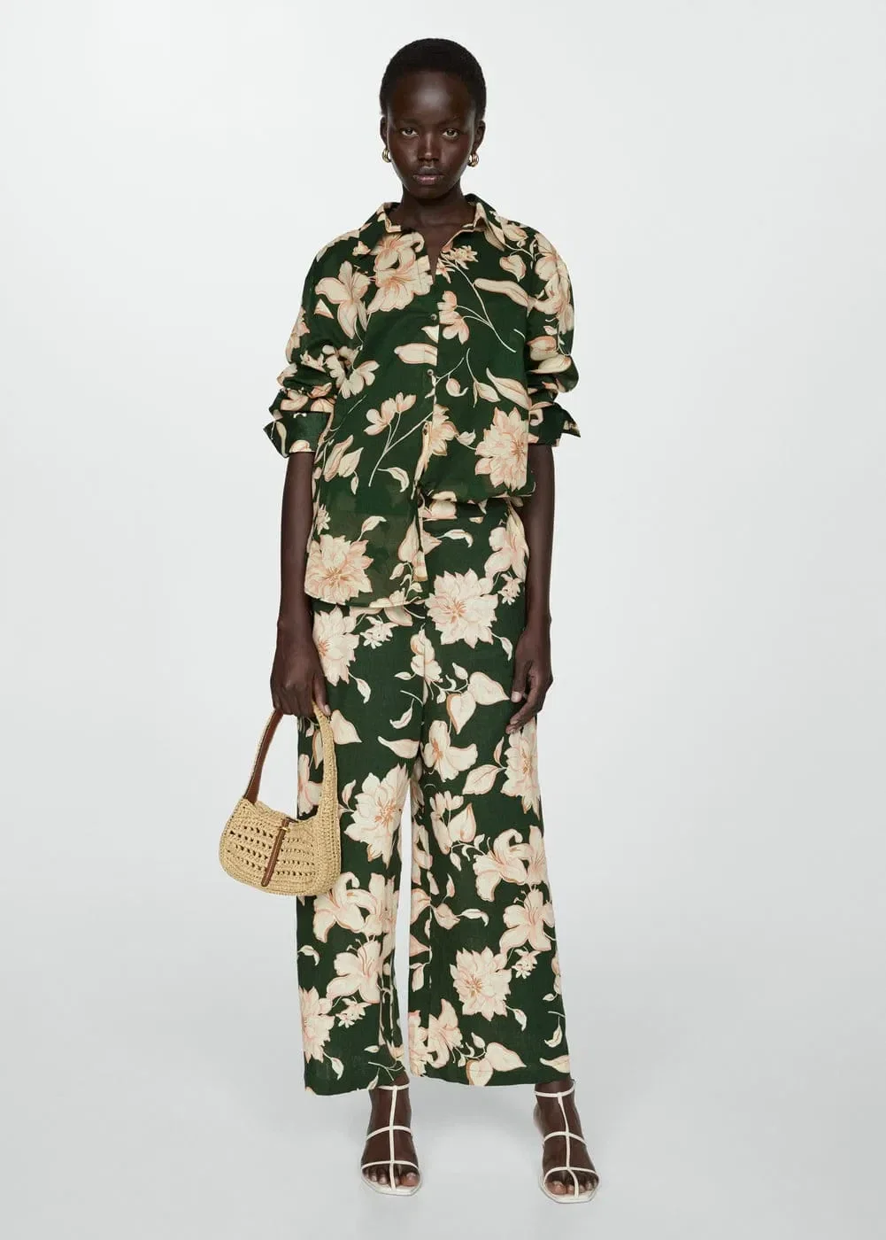 Hose von Mango mit floralem Druck grün Model Pantalon 312 Red