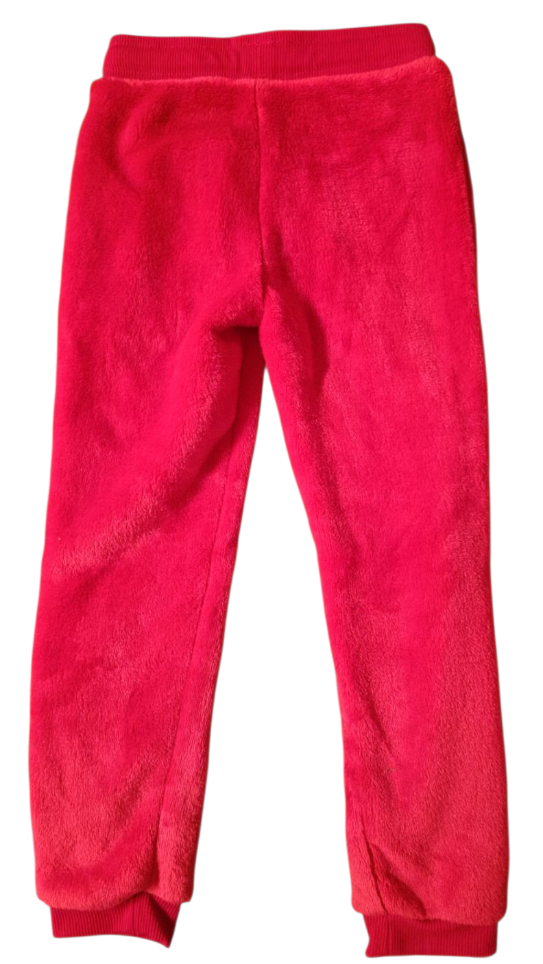 schöne flauschige Plüsch-Jogginghose, rot, vorne Rentier Motiv, am Bund zum Binden