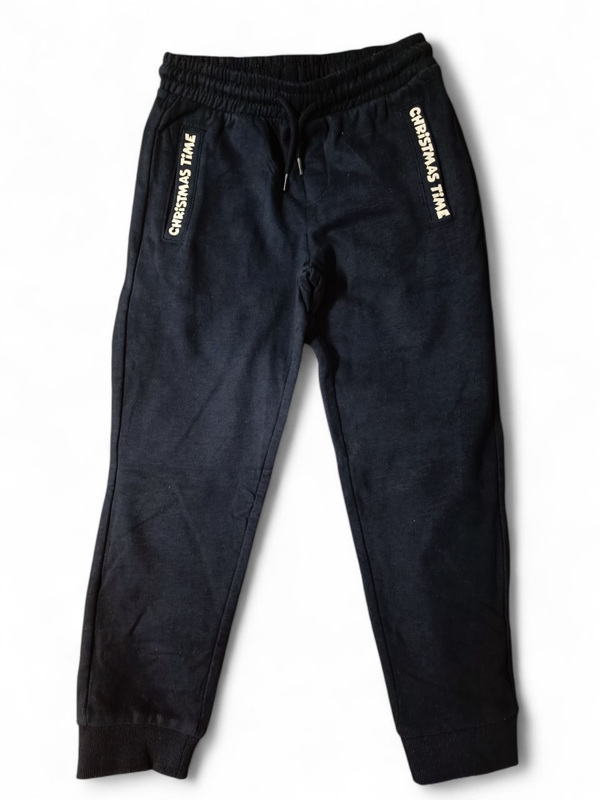 Jogginghose von Little Kids mit weißem Christmas Time Schriftzug an den vorderen Einschubtaschen.