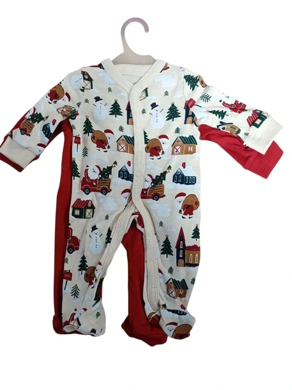 Tolle Strampler Schlafanzüge von so cute 1x rot 1x weiß mit weihnachtlichen Druck, Druckknopfleiste vorne