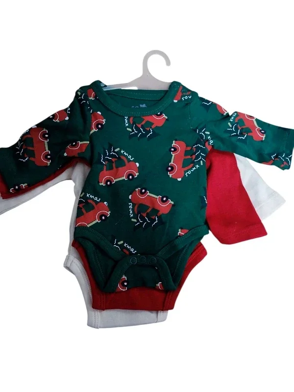 Tolle Langarmbodies von so cute 1x weiß und 1x grün mit weihnachtlichem Druck 1x rot uni