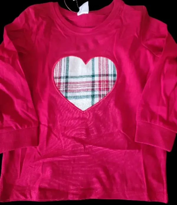 toller rot weiß karierter Pyjama von Little Kids . Rotes Langarm Shirt mit Rundhalsausschnitt kariertes Herz vorne. karierte lange Hose mit Gummibund und Schnürung.