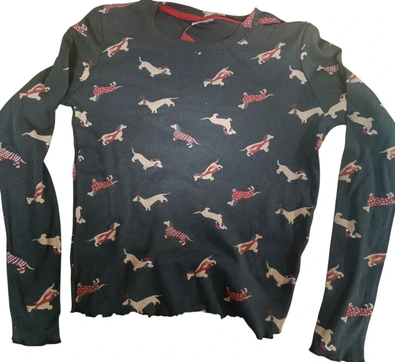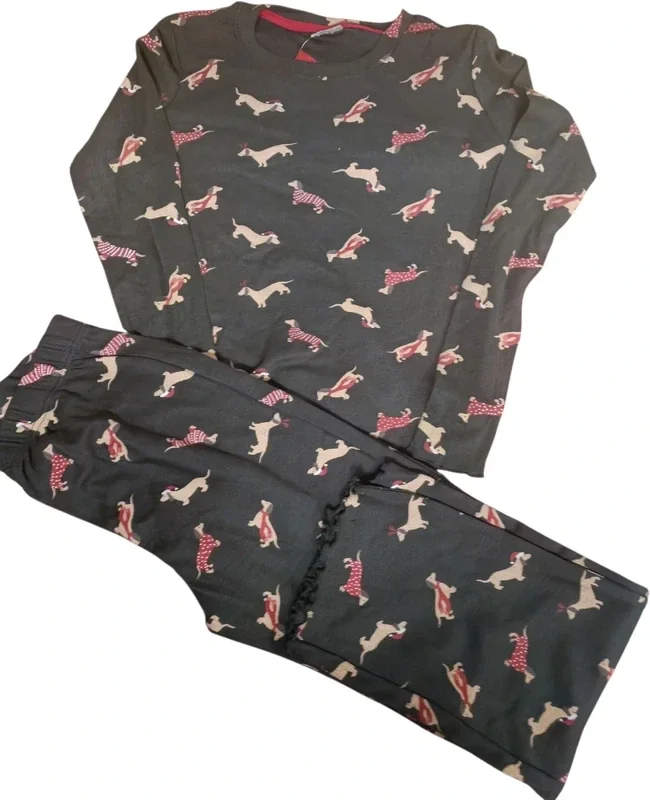 toller Pyjama von Beloved mit winterlichem Dackel-Motiven. Langarm-Shirt mit rundhalsausschnitt, lange Hose mit Gummibund.