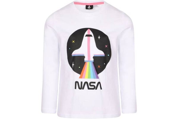 Toller Mädchen Pyjama Nasa weißes Langarm-Shirt und lange rosa Hose.