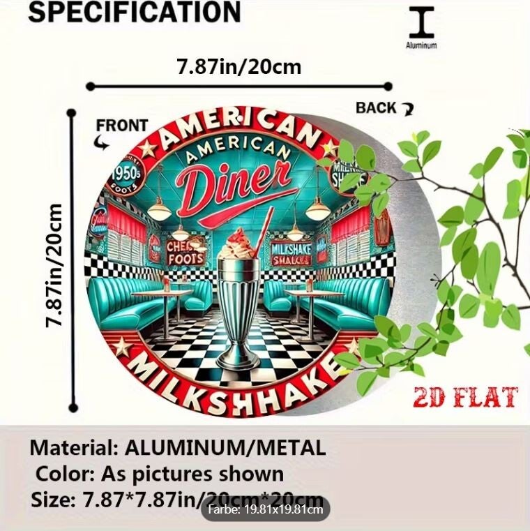 Retro 1950er Jahre Amerikanischer Diner Aluminiumschild rund, Vintage Milkshake Design
