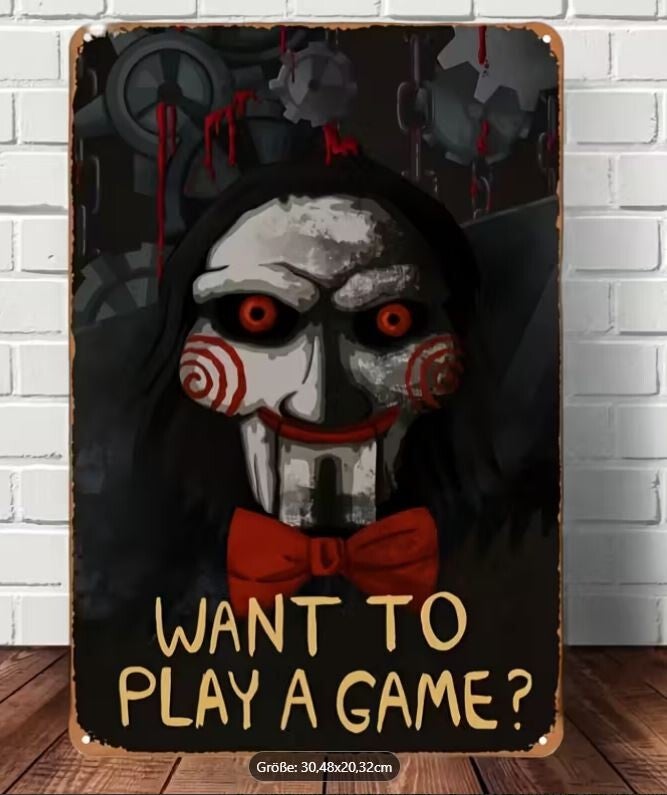 30.48cm x 20.32cm Retro Blechschild Jigsaw Want to play a game Wanddekor für Zuhause, Küche & Spielzimmer - Einfach zu Hängen