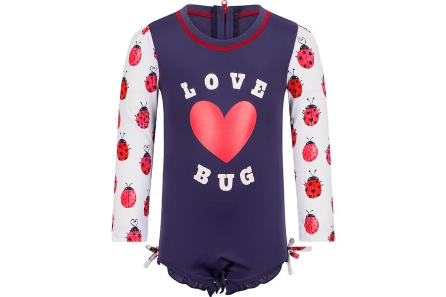 toller Badeanzug von Hatley Love Bug,langärmelig hinten mit Reißverschluss, Druckknöpfe im Schritt