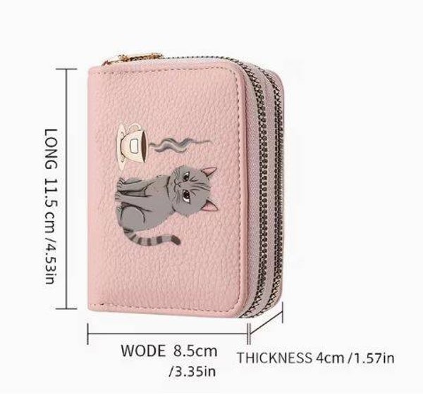Doppelschicht-Reißverschluss-Geldbörse Cat&Coffee