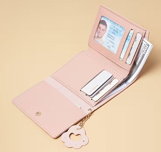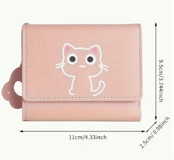 PU Geldbörse, 3-fach faltbar, mit Knopfverschluss, kompakt, Katzenmotiv, für Bargeld, Karten- & Ausweise, langlebig