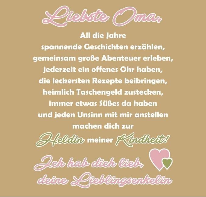 Spruch innen: liebevolle Botschaft von der Lieblingsenkelin an die Oma