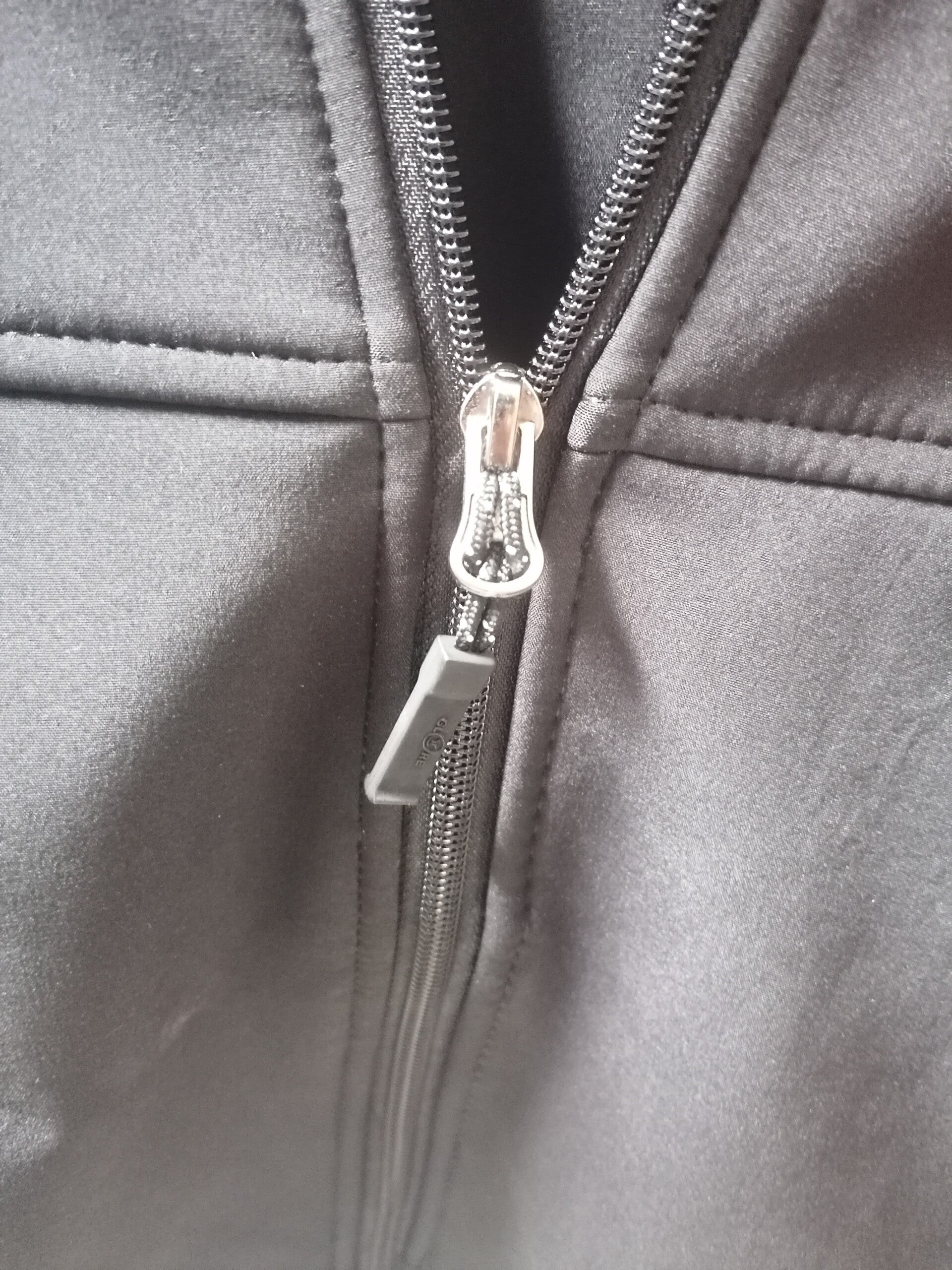 Schwarze Softshelljacke für Damen, mit Kapuze, viele Zipp Taschen Größe XS